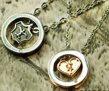 | メンズ・レディース供にリングに囲まれているデザインが異なっているのもポイント★ディティールにこだわった、一級品ペアネックレス♪ |