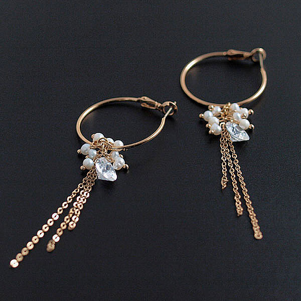 レディ度UP!2WAY♪CZ淡水パールフープピアス!18金コーティング/チタンポスト!