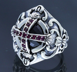 | 祈りのスカルリングから文字をなくしたシンプルなリング。頭部には聖なる赤い魔石のガーネットが添えられています。 |