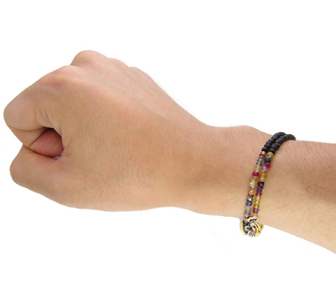 小ぶりなオニキスビーズとカラフルな天然石のビーズを組み合わせた二重巻き仕様のブレスレット。