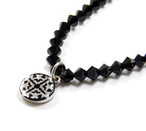 セインツのSロゴ(裏)と模様(表)を彫刻し、その溝にRESINを流し込んだトップをセット。 本体にはスワロフスキー エレメントで大人の雰囲気を演出したシンプルなチョーカー。 自分へのご褒美・プレゼントにも大変喜ばれます。 SAINTS最高傑作の逸品です。