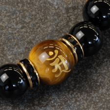 身を守ってくれる守護神の力である古代文字があなたを守護してくれる辰(たつ)・巳(へび)年生まれの守護神、梵字アンのメンズパワーストーンブレスレットです。梵字彫り黄虎目石、オニキス、金黒ロンデルパーツを融合したデザイン性を重視した見る者に存在感を与えファッションセンス抜群の高品質でスタイリッシュなカッコイイ本物志向のブレスレットです。どんなスタイルにもマッチしやすいおしゃれに身に付けられるパワーストーンを厳選 したまさにオンリーワンのパワーストーンブレスレットです。