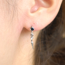ダガーをモチーフにした2連フォルム。ダイヤに匹敵するキラキラの輝きを持つ漆黒のブラックジルコニアをセットした横顔から耳元をクールに魅せるカッコイイデザインピアスですどんな装いにもキマルのでオシャレに個性を発揮してお楽しみ頂けます。 プレゼントにも喜ばれる本物志向のオンリーワンのシルバーピアスです。