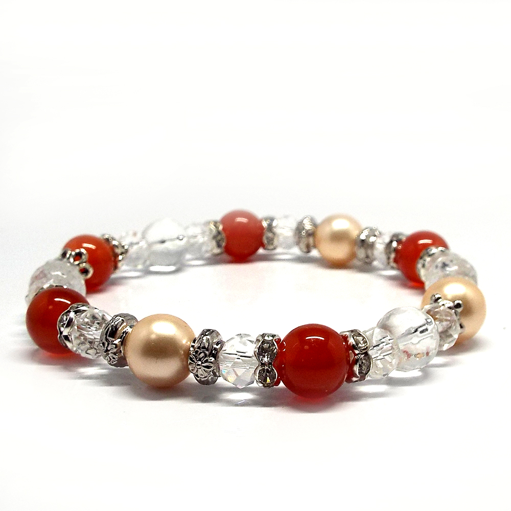 カーネリアンとパールを使った華やかなブレスレットです☆ 石言葉『幸福』のイメージ通り、明るいオレンジが ハッピーオーラいっぱいのカーネリアンは 目標を達成するための勇気を授けてくれると言われています♪ どんなお洋服も上品かつ清楚に見せてくれて 使い勝手がホントにいいです!!! ファッションセンス抜群のパワーストーンブレスレットです。 自分へのご褒美・プレゼントにも大変喜ばれます。