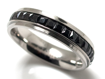 ブラックキュービックジルコニア×ハーフエタニティ・ステンレスリング・・