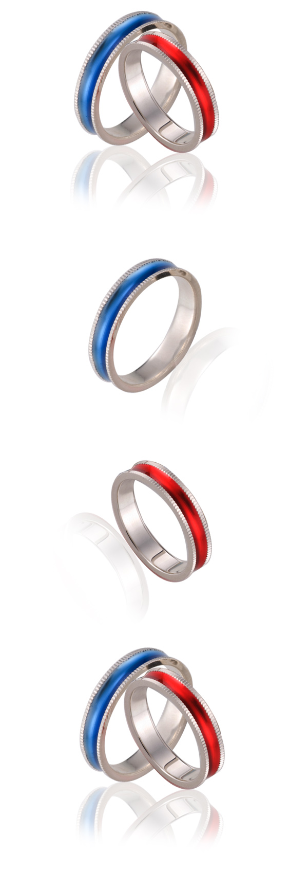 シルバーリングに色鮮やかな美しいコーティングを施したペアリング。 ファッションの虜になるほどデザインセンスの優れたリングデザイン。 男性にはクールでワイルド感溢れるスカイブルーを 女性には優しさ・柔らかみ溢れるシャイニングレッドをセット。 二人の愛が結ばれてる証の本物志向のペアリングです。